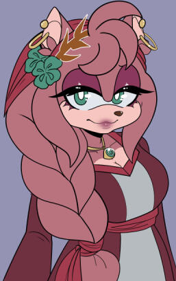 Amy had chased after Sonic in her early years, admiring him to the point of developing a crush on him. As a young girl she was competent as a member of the team, but she would try and get her hands on Sonic in any way she could, even to the point of accidentally stumbling into trouble. This would often lead to her being not only rejected by Sonic, but even sometimes outright ignored.As she grew however, she would mellow out and become both one of his closest friends and most reliable allies. Throughout the years she and Sonic would grow closer, and when Eggman had finally disappeared, the two of them took the opportunity to try dating. This would go on for some time, the two of them eventually getting married and taking their relationship on the road, with Amy using her newfound free time to better study the occult. From their van, Amy runs a small business where she will do tarot readings, create and sell charms for various purposes, and even sometimes practice her more occult activities such as communicating with spirits.